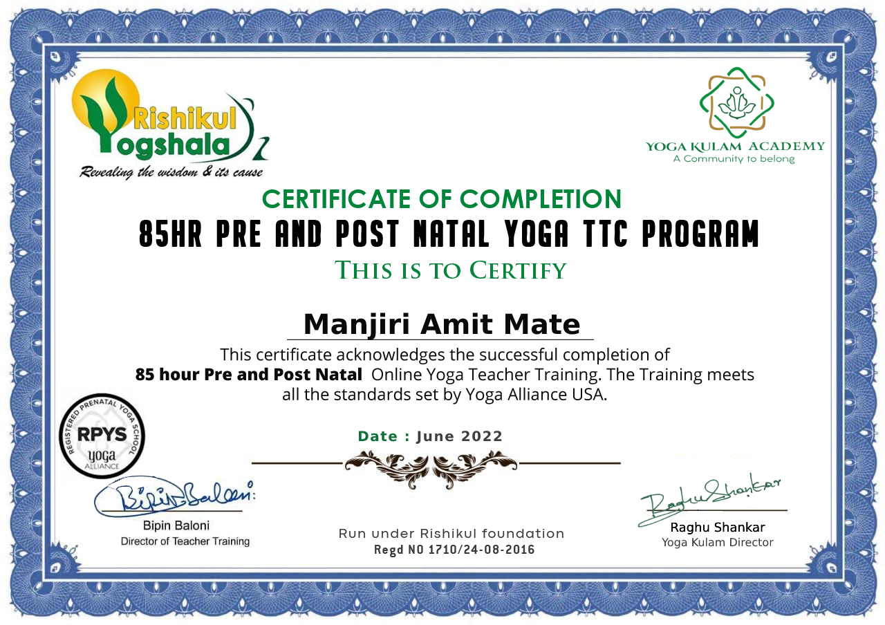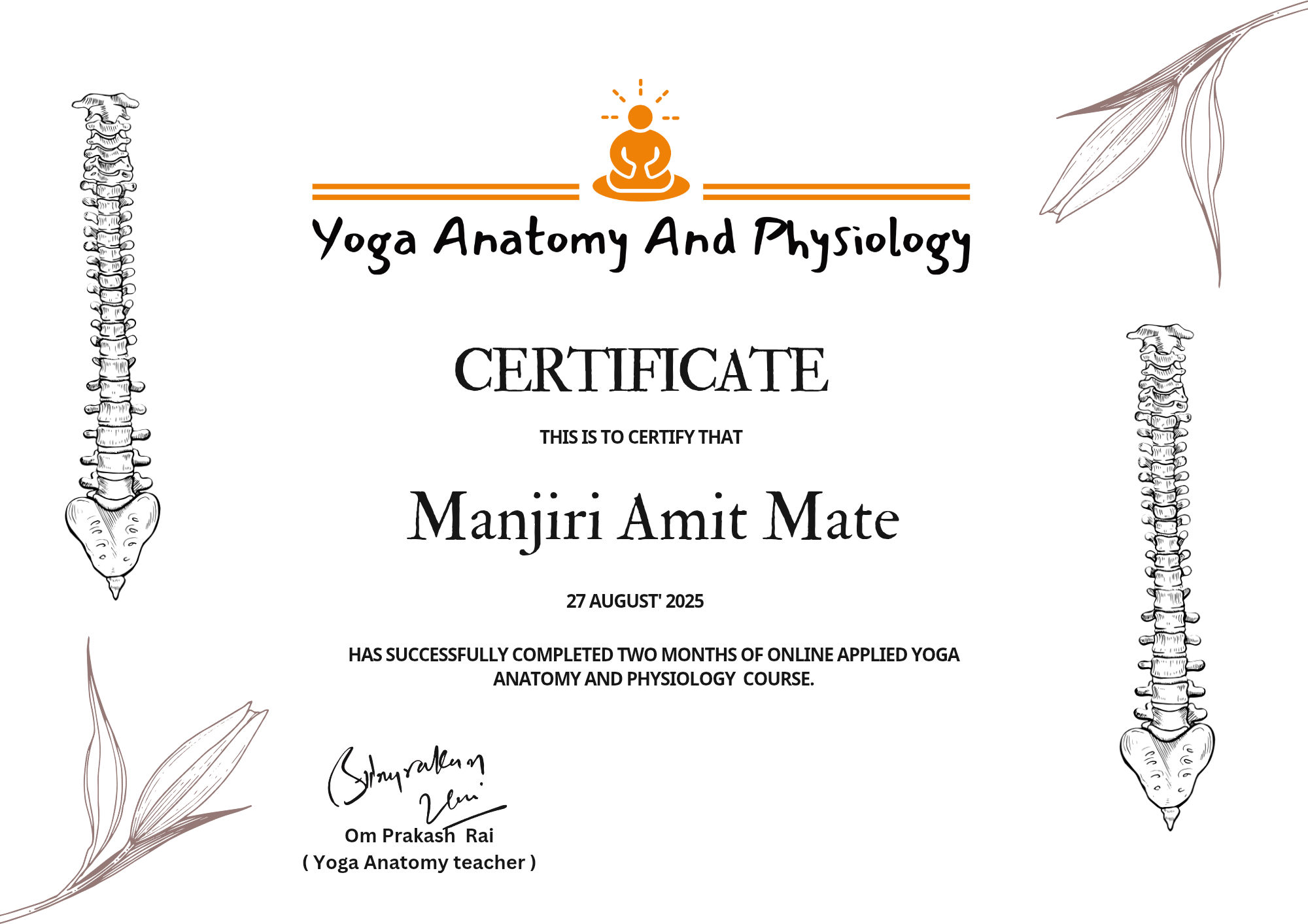 Manjiri holds multiple certifications, showcasing a commitment to continuous learning and a deep passion for helping others achieve their wellness goals. Their extensive knowledge of yoga, combined with years of practical experience, allows them to provide expert guidance to students of all levels.